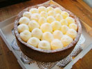 パイに甘酸っぱいレモンクリームをつめ、生クリームをたっぷり絞りました。