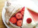 柔らかいスポンジにいちごムースを重ね生クリームで飾ったケーキ。